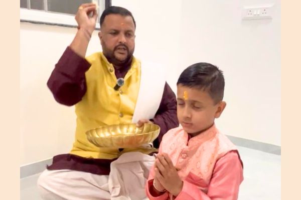 Sacred Puja Services Choose from a wide range of authentic Hindu pujas, performed by experienced pandits following traditional Vedic rituals. Udak Shanti Puja A Vedic purification ritual performed to bring peace, harmony, and spiritual cleansing to the home/Offices. (2.5 Hours) ₹10,500 Including Samagree Rudrabhishek Puja A powerful Abhishek offered to Lord Shiva for inner stability, strength, and removal of obstacles. ₹15,100 Including Samagree Naamkaran Sanskar A Vedic Sanskar performed commonly known as Naming Ceremony where 4 Names of the child. ₹4,100 Including Samagree Upanayan Sanskar A Vedic Sanskar marking the beginning of a child’s disciplined learning and value-based education. ₹11,000 Including Samagree Annaprashan Sanskar A Vedic Sanskar performed to introduce the solid food to the child, symbolising healthy growth and nourishment. (1 Hour) ₹5,100 Including Samagree Birthday Puja A ritual performed with Saptcheeranjiv Hawan to seek blessings for health, and balance in the coming year of life. (1 Hour) ₹3,501 Including Samagree Bhumi Pujan A ritual performed to worship goddess earth before construction to seek harmony and positive beginnings for the space. (45 Mins) ₹5,100 Including Samagree Garbhasanskar Puja Vedic sanskar performed during pregnancy for mental peace and emotional positivity (1.5 Hours) ₹5,100 Including Samagree Navachandi Puja Powerful Durga puja performed during major or important life events, often along with Vastushanti (3 Days) ₹51,000 Including Samagree Satyanarayan Puja A Ritual performed to worship lord Vishnu (Narayana) to seek blessings on any auspicious event. ₹5,100 Including Samagree Gruhpravesh Puja Ganesh/Kalash Pujan performed during before the first entry into a new home for peace (1.5 Hours) ₹3,500 Including Samagree Vastu Shanti Puja Complete new house puja with gruhapravesh and Havan to remove Vastu Dosh and invite positive energy (4 Hours) ₹14,500 Including Samagree Not Sure Which Puja You Need? Speak with our experienced pandits and get guidance based on your occasion, horoscope, and muhurat. Talk to Our Pandit