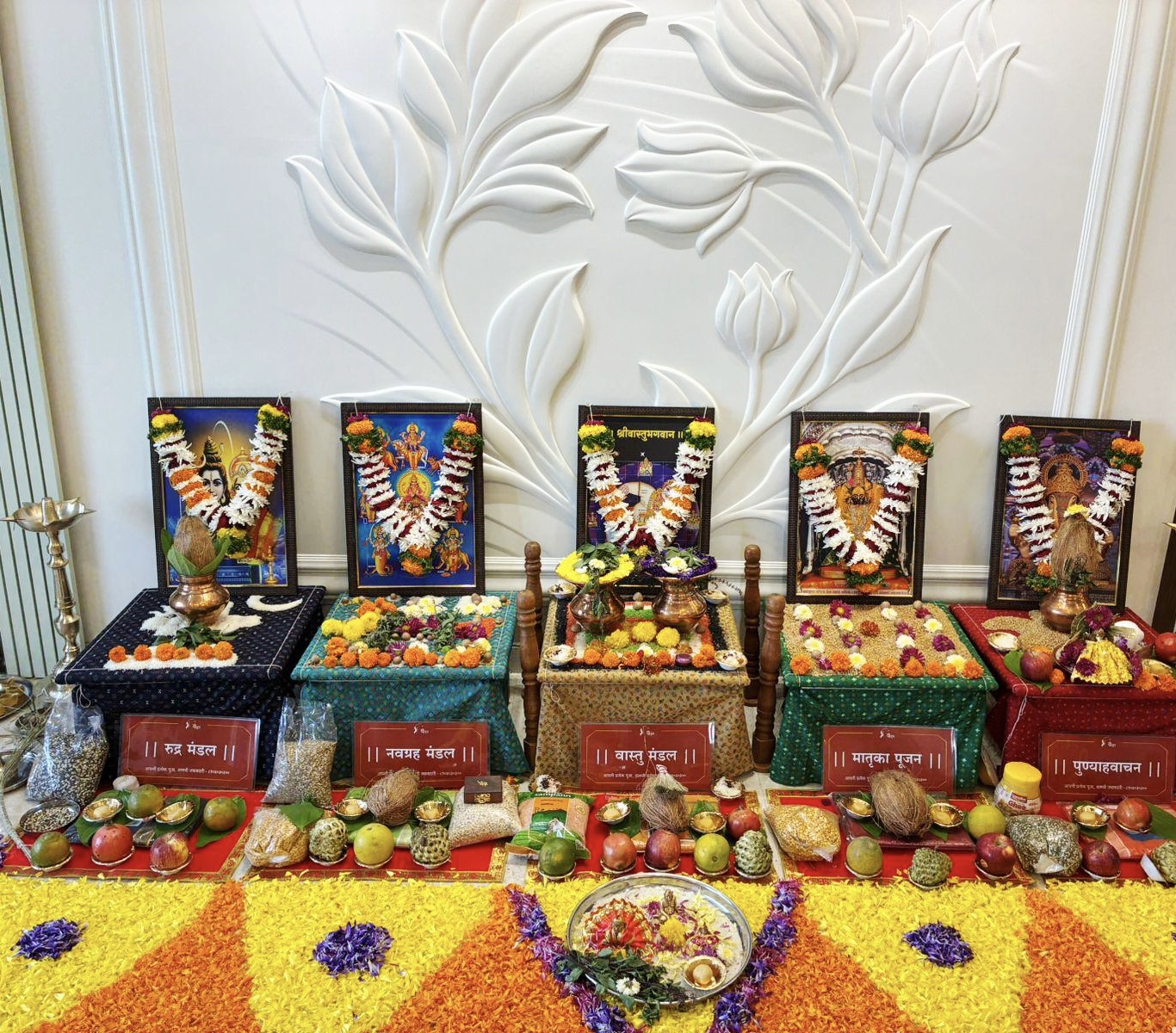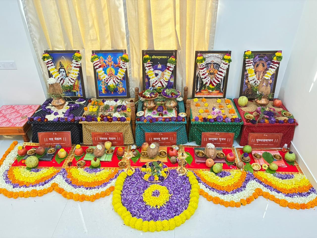 This puja is performed to remove Vastu defects, eliminate negative energies, and clear any obstacles. Worship is offered to Lord Ganesha, Vastu Devta, Navagrahas (nine planets), and the guardian deities of different directions.