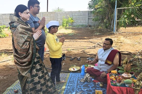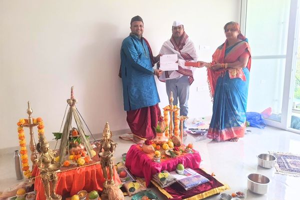 Sacred Puja Services Choose from a wide range of authentic Hindu pujas, performed by experienced pandits following traditional Vedic rituals. Vastu Shanti Puja Complete new house puja with gruhapravesh and Havan to remove Vastu Dosh and invite positive energy (4 Hours) ₹14,500 Including Samagree Gruhpravesh Puja Ganesh/Kalash Pujan performed during before the first entry into a new home for peace (1.5 Hours) ₹3,500 Including Samagree Navachandi Puja Powerful Durga puja performed during major or important life events, often along with Vastushanti (3 Days) ₹51,000 Including Samagree Garbhasanskar Puja Vedic sanskar performed during pregnancy for mental peace and emotional positivity (1.5 Hours) ₹5,100 Including Samagree Naamkaran Sanskar A Vedic Sanskar performed commonly known as Naming Ceremony where 4 Names of the child. ₹4,100 Including Samagree Annaprashan Sanskar A Vedic Sanskar performed to introduce the solid food to the child, symbolising healthy growth and nourishment. (1 Hour) ₹5,100 Including Samagree Birthday Puja A ritual performed with Saptcheeranjiv Hawan to seek blessings for health, and balance in the coming year of life. (1 Hour) ₹3,501 Including Samagree Satyanarayan Puja A Ritual performed to worship lord Vishnu (Narayana) to seek blessings on any auspicious event. ₹3,500 Including Samagree Rudrabhishek Puja A powerful Abhishek offered to Lord Shiva for inner stability, strength, and removal of obstacles. ₹15,100 Including Samagree Bhumi Pujan A ritual performed to worship goddess earth before construction to seek harmony and positive beginnings for the space. (45 Mins) ₹5,100 Including Samagree Udak Shanti Puja A Vedic purification ritual performed to bring peace, harmony, and spiritual cleansing to the home/Offices. (2.5 Hours) ₹10,500 Including Samagree Upanayan Sanskar A Vedic Sanskar marking the beginning of a child’s disciplined learning and value-based education. ₹11,000 Including Samagree Not Sure Which Puja You Need? Speak with our experienced pandits and get guidance based on your occasion, horoscope, and muhurat. Talk to Our Pandit